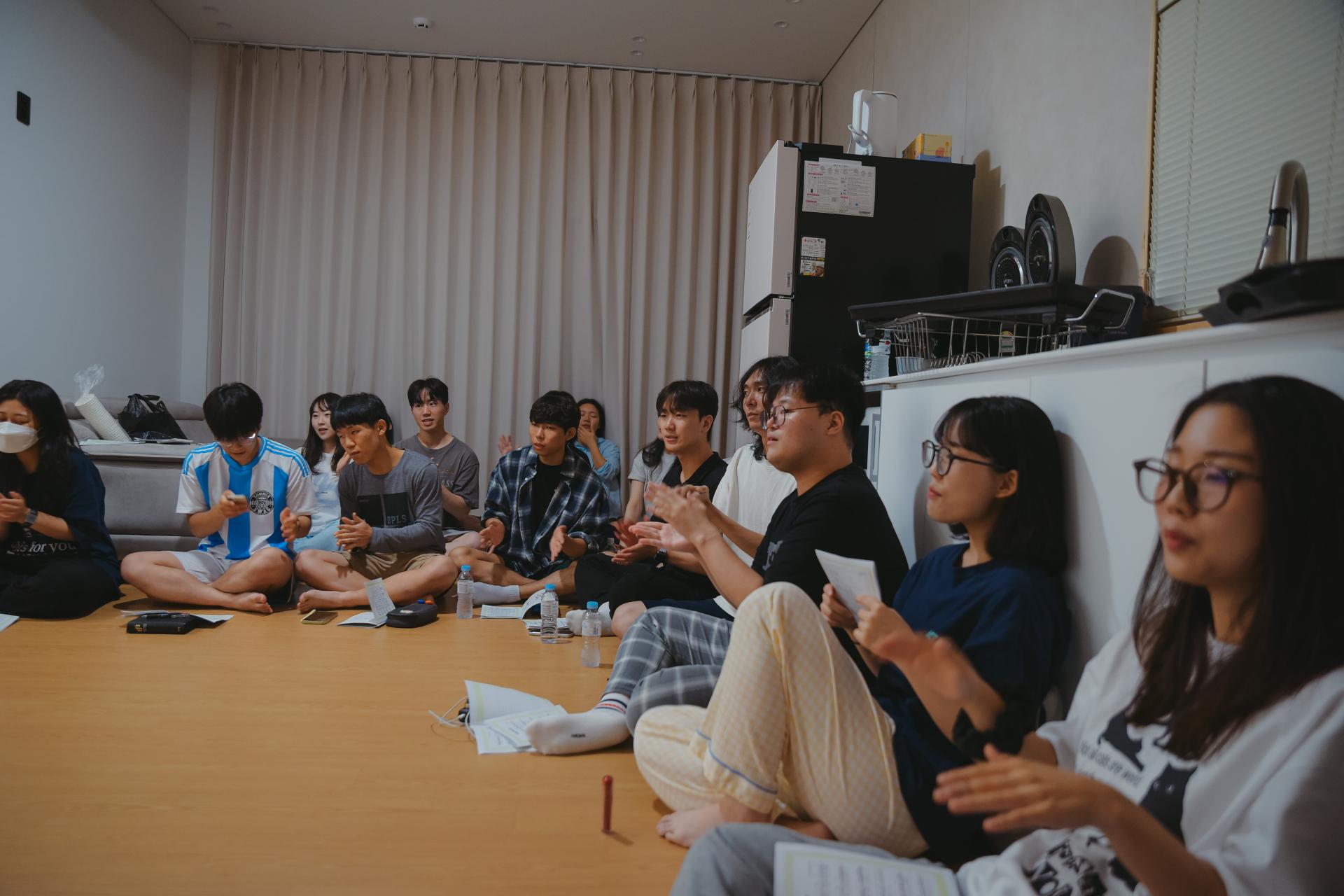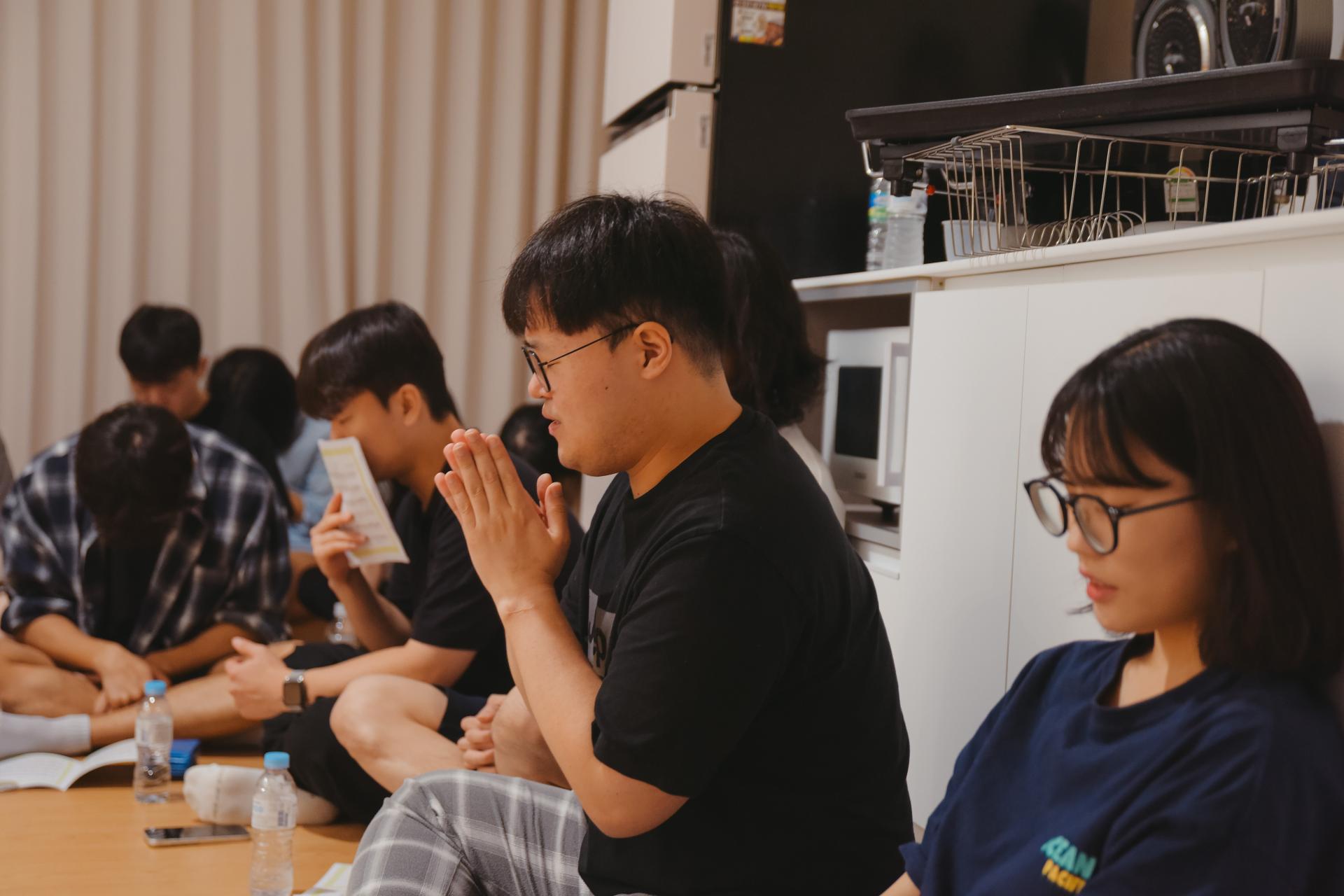 03 영의 양식을 채우는 시간 육의 양식을 채웠다면, 이제는 영의 양식을 채우는 시간! 🙏🏻 다함께 모여 '합심'의 찬양으로 예배의 문을 열었습니다. 주일에 있을 군부대 사역을 위해 기도하며, 우리의 마음을 활짝 여는 예배이었습니다.