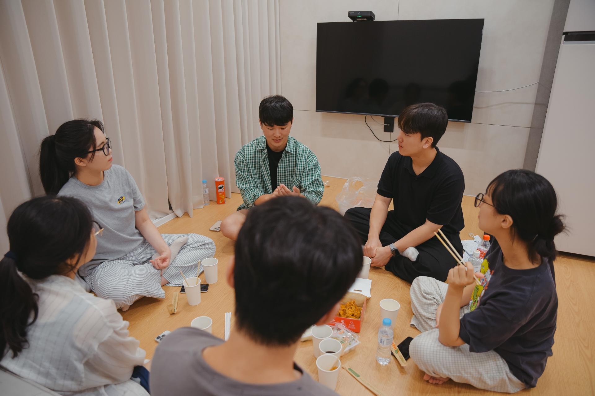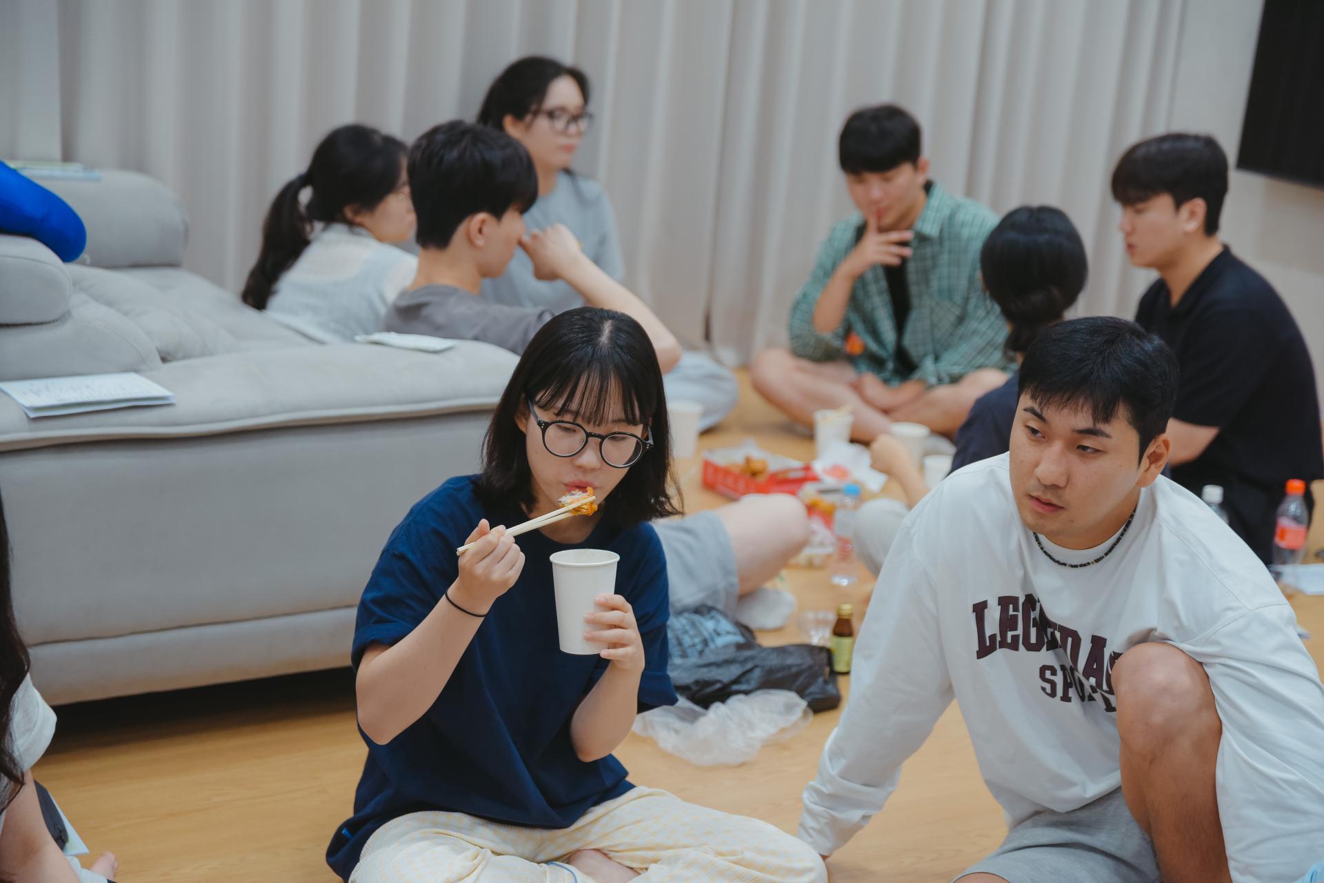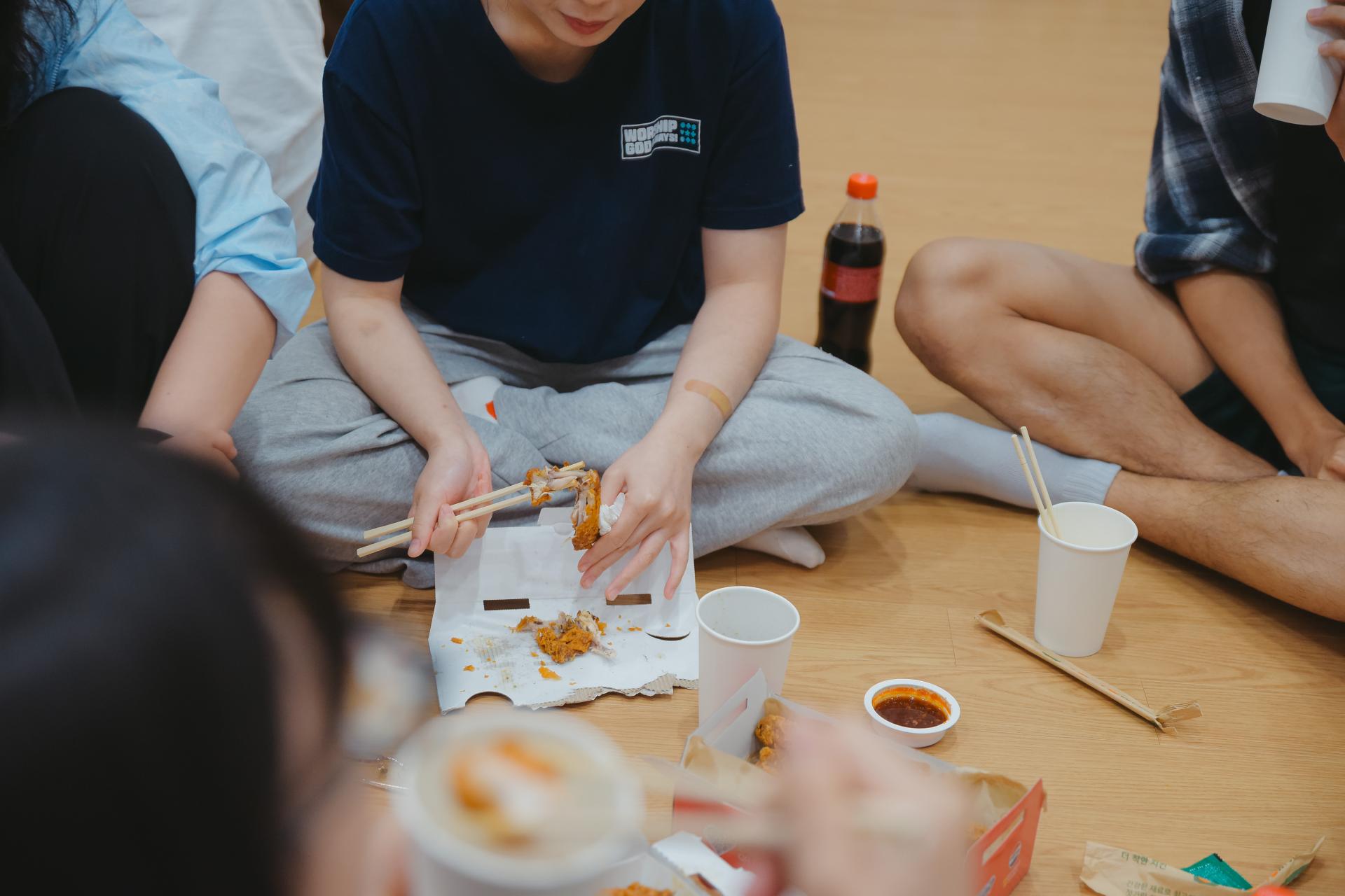 04 나눔의 꽃은 치킨! 예배가 마친 후에 특송연습 중에 나타난 담임목사님이 쏘는 치킨!!!!🍗 이번 치킨타임은 특별했습니다. 목장별이 아닌 새로운 청년들과 앉아서 나눔의 시간이었습니다. 예수님을 어떻게 만났는지, 우리교회에 온 계기를 물으며 서로에 대해 몰랐던 이야기들을 나누는 시간이었습니다. 더욱 서로에 대해 가까워졌어요:)