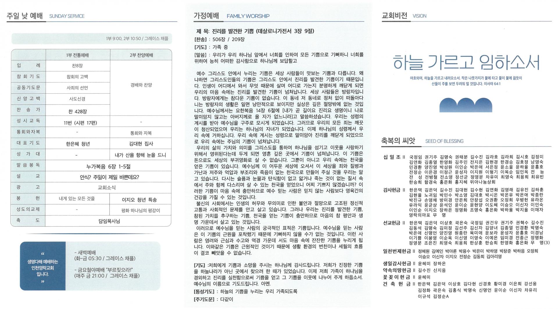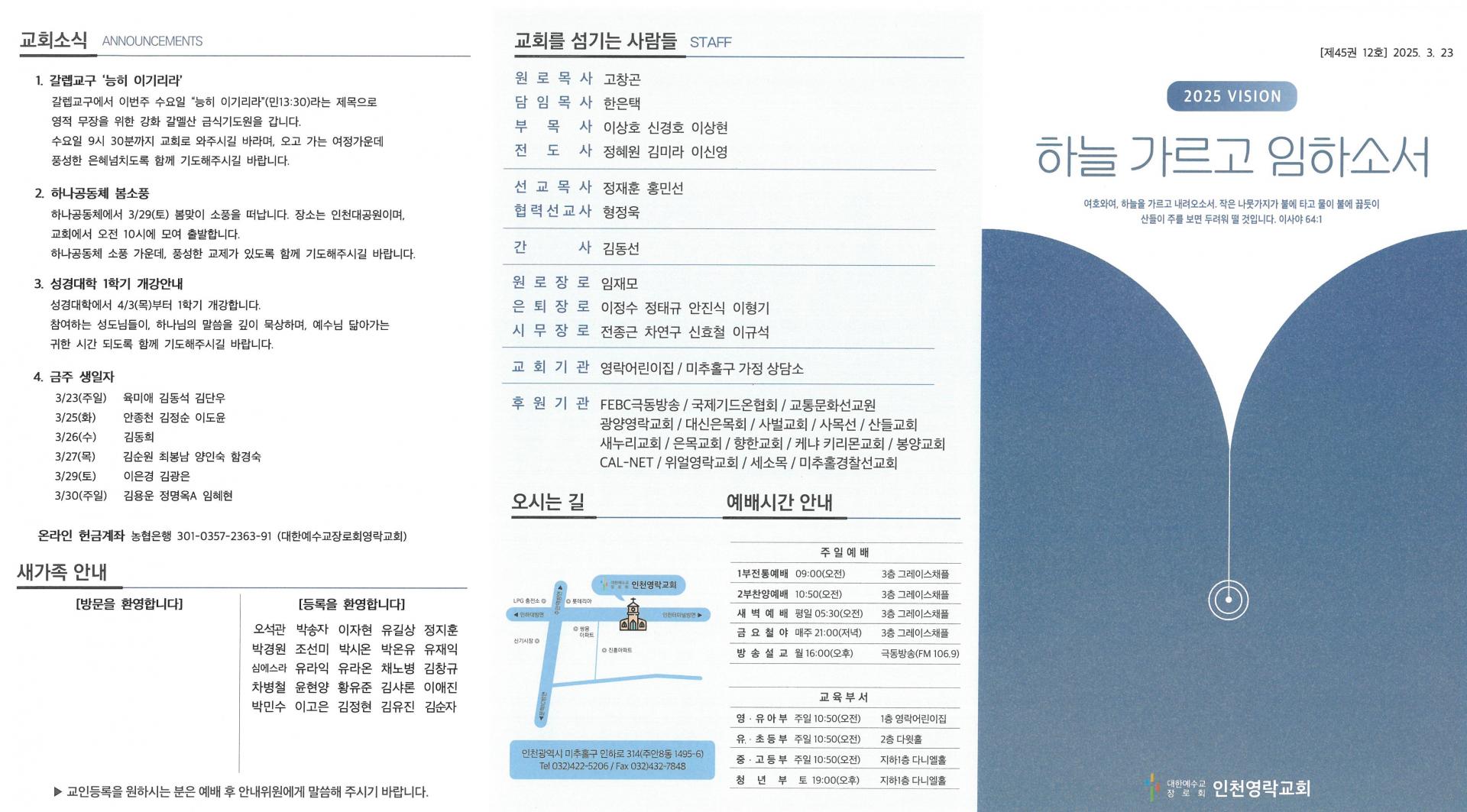 2025년 3월 23일 인천영락교회 주일예배 주보